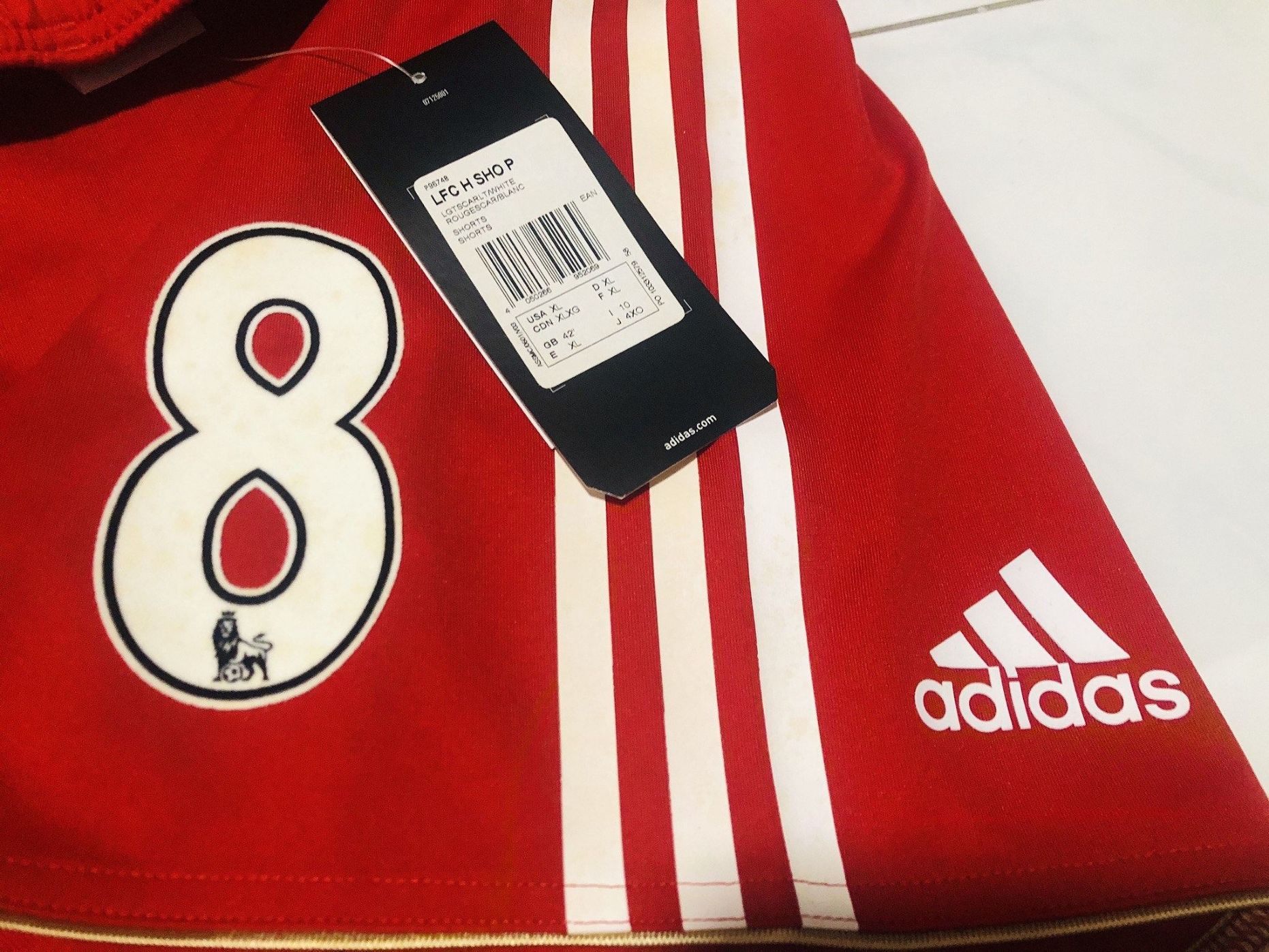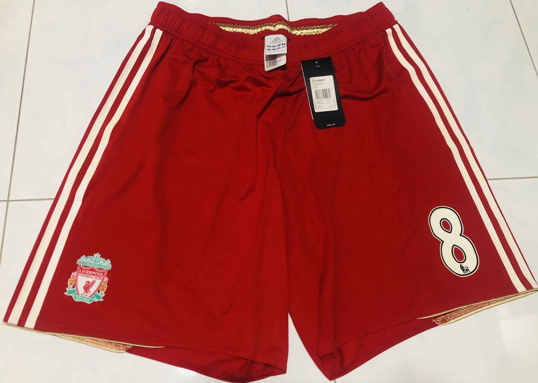 Official Adidas Techfit Player Issue Liverpool 2010/2012 Home Shorts with Premier League No.8 (Steven Gerrard)